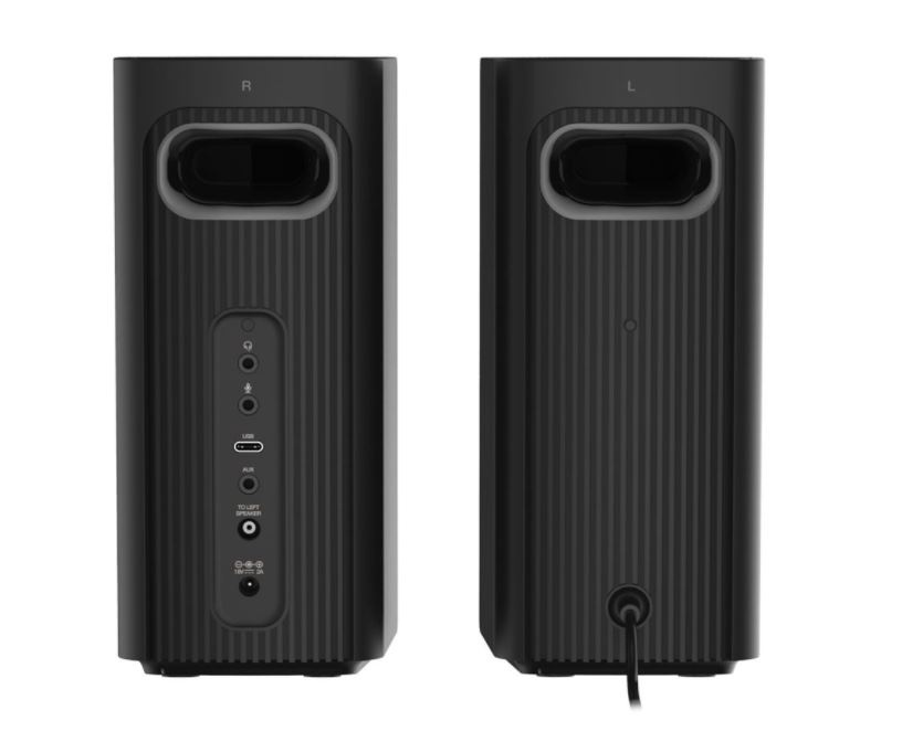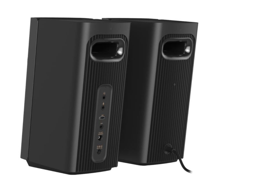 Reproduktorový systém Creative T60 především nabízí celou škálu možností připojení. Kromě zvuku USB-C pro herní konzole obsahuje integrované konektory pro připojení sluchátek a mikrofon, když se potřebujete zúčastnit online pracovního hovoru. Dále je tu praktické a snadno přístupné tlačítko pro přepínání reproduktorů a sluchátek. Nejvyšší čas posunout úroveň výchozího počítačového zvuku někam dál.