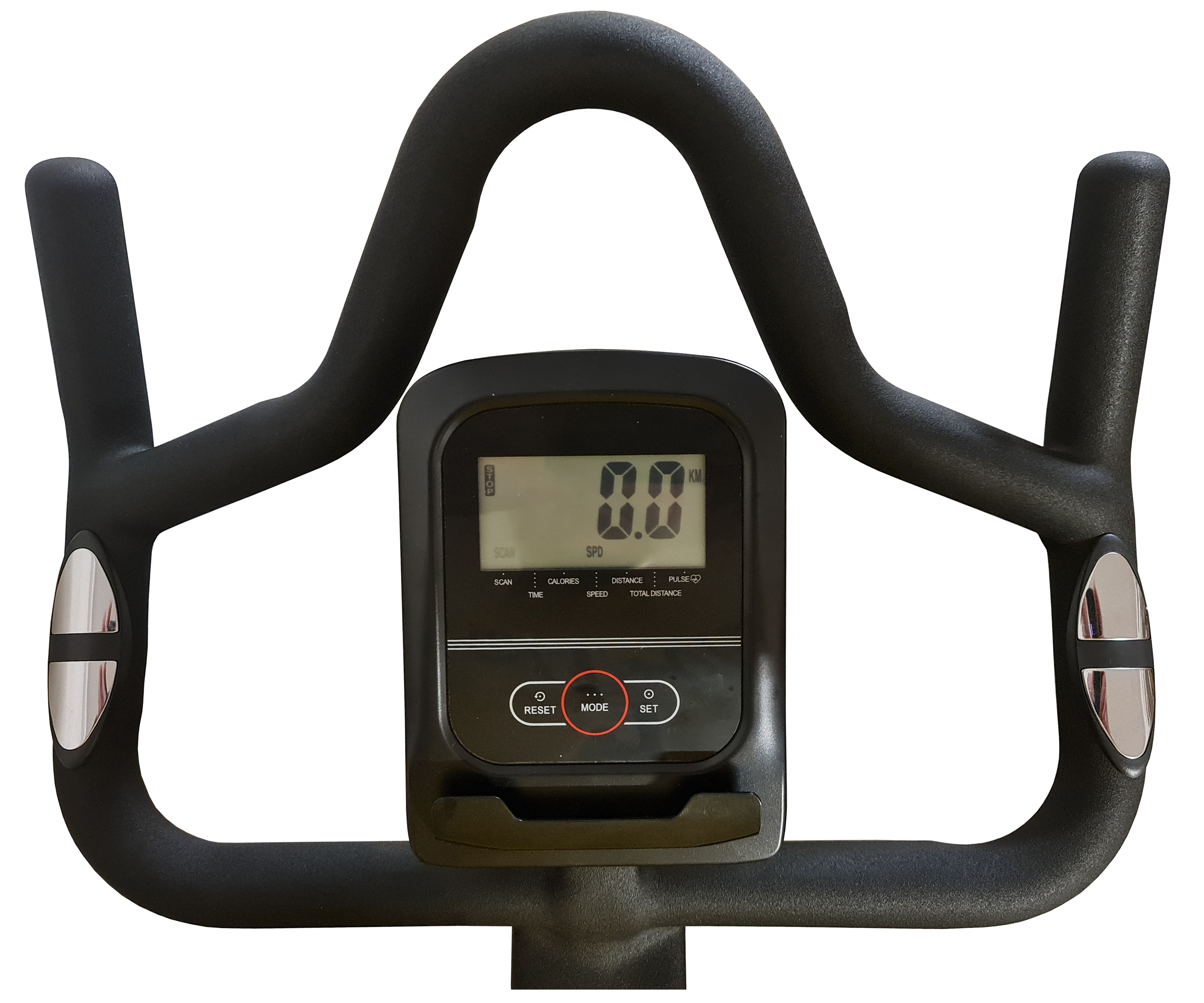 Součástí výbavy je cyklopočítač zobrazující čas, vzdálenost, kalorie, rychlost a srdeční tep (měřený senzory v rukojetích). Nechybí ani nouzová brzda, která stroj okamžitě zastaví. Přesun trenažéru usnadní transportní kolečka.