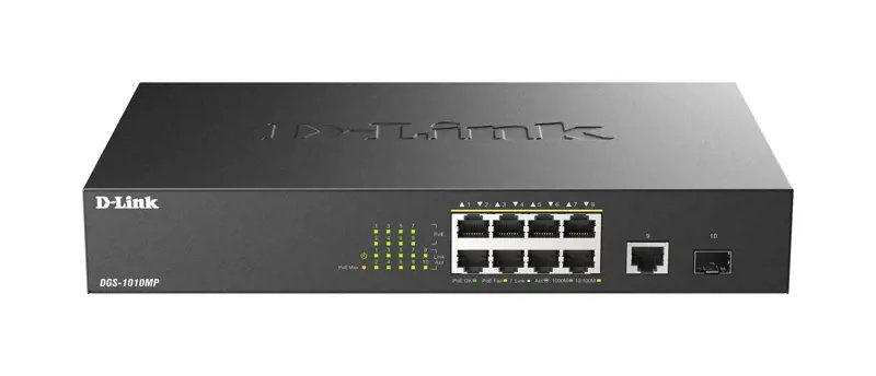 D-Link DGS-1010MP/E - 10-Port Gigabit PoE+ Unmanaged Switch,1 x SFP port,1 x Gigabit Uplink Port