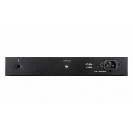 Prepínac poskytuje 24 gigabitových portu pro bežne používané ethernetové pripojení, takže funguje bez problému s již zavedenými sítovými kabely (Cat5 nebo vyšší). V režimu full-duplex lze dosáhnout rychlosti až 2000 Mb/s, což dává pracovním stanicím prakticky neomezený prístup k datum na serveru.