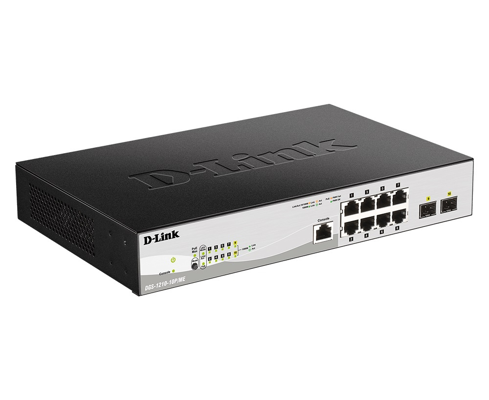 D-Link DGS-1210-10P/ME/E 8x 1G PoE, 2x 1G SFP Metro Ethernet Managed Switch