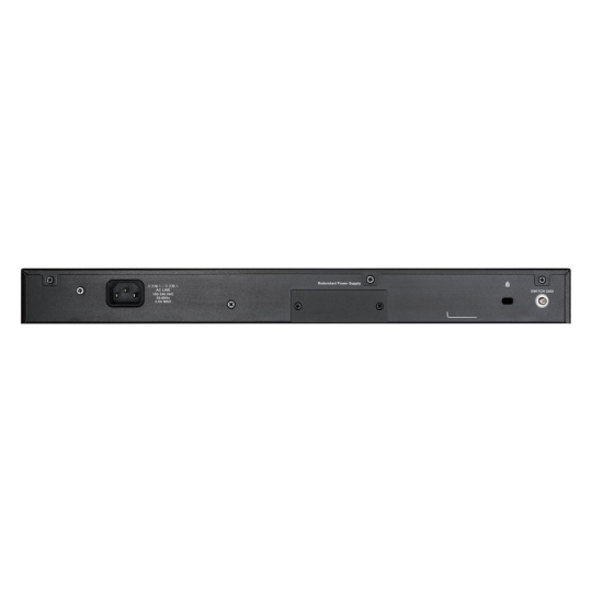 - Celkový PoE výkon přepínače 370W, lze zvýšit na 740W pomocí externího redundantního napájecího zdroje DPS-700