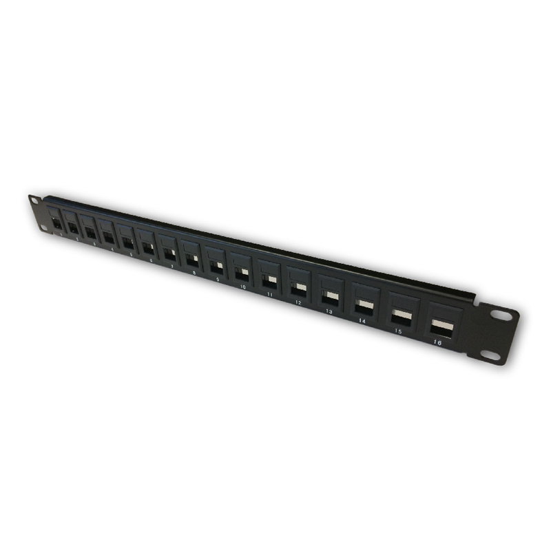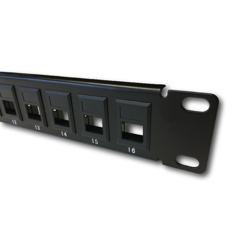- 19" Neosazený patch panel určený pro montáž do 19" datových rozvaděčů.