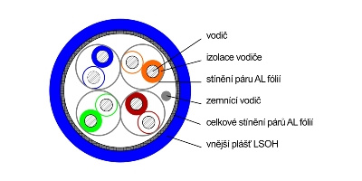 - stíněné provedení F/FTP (AL fólie celkově i jednotlivé páry)