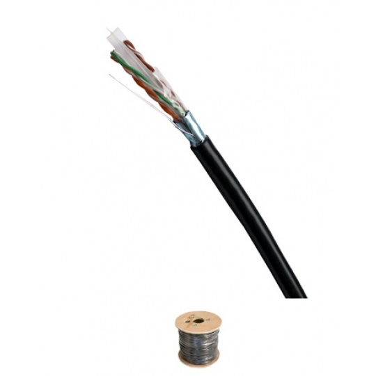DATACOM FTP drát CAT6 PE,Fca 500m cívka černý OUTDOOR