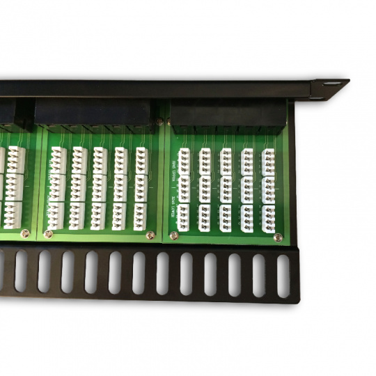 *19" nestíněný ISDN patch panel určený pro montáž do 19" datového rozvaděče.