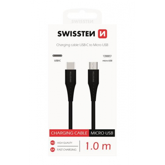 DATOVÝ KABEL SWISSTEN USB-C / MICRO USB 1,0 M ČERNÝ