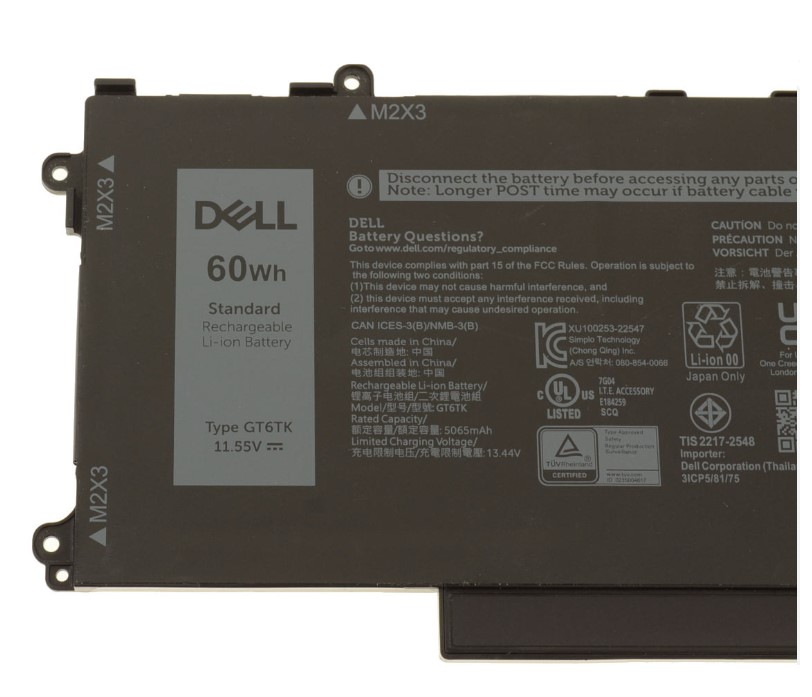 Stále cestujete? Už si nemusíte dělat starosti s omezenou výdrží baterií! Svůj notebook můžete napájet touto 3-článkovou lithium-iontovou baterií Dell™. Díky kapacitě až 60 Wh vám baterie umožní bezproblémovou práci na služebních cestách i na dovolené. Tato baterie vám poskytne nepřetržité a spolehlivé napájení, které potřebujete pro co nejlepší využívání notebooku. Lithium-iontové baterie vydrží déle než běžné baterie a nevyžadují tak častou výměnu. Tento produkt byl testován a ověřen v laboratořích Dell. Pokud jej použijete v notebooku Dell, vztahuje se na něj technická podpora společnosti Dell.