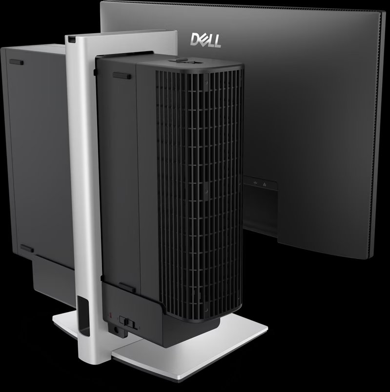 All-in-One monitor stand to secure a Slim desktop (Pro/Pro Plus/Pro Max) to a VESA-compatible monitor. Designed for a seamless setup and an optimized, clutter-free workspace.