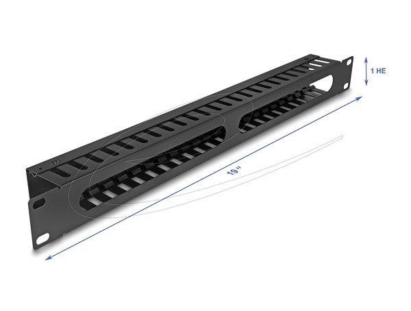 Delock 19” Management panel pro správu kabelů, se 2 otvory, 1U, kov, černý