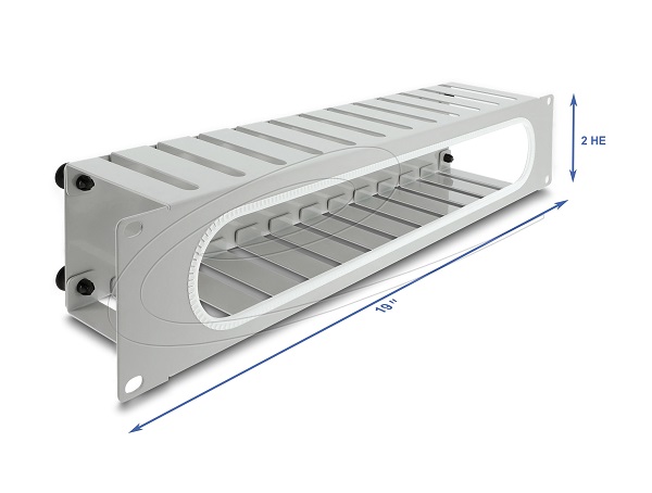 Delock 19” Routing panel k vedení kabelů, s otvorem a ochranou okraje, 2U, šedý