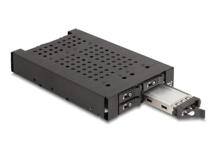 Tento pevný kovový mobilní rack značky Delock lze nainstalovat do 3.5” pozice na PC a poskytuje čtyři sloty M.2 ve formátu 2280, 2260, 2242 nebo 2230.