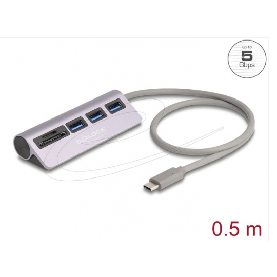 Delock 3 portový rozbočovač USB 5 Gbps včetně čtečky karet SD a Micro SD s konektorem rozhraní USB Type-C™