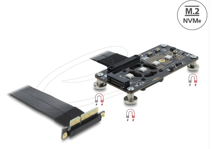 Tento adapter od Delocku umožňuje připojení M.2 SSD ve formátu 2280, 2260, 2242 a 2230t. Umožňuje připojení disku M.2 SSD založeného na PCIe.