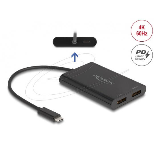 Delock Adaptér USB Type-C na 2 x DisplayPort 4K 60 Hz s grafikou DisplayLink a USB PD