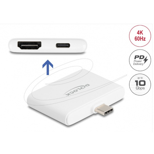 Delock Adaptér z rozhraní USB Type-C™ na HDMI 4K 60 Hz a USB Type-C™ Data + PD 94 W