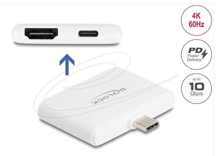 Delock Adaptér z rozhraní USB Type-C™ na HDMI 4K 60 Hz a USB Type-C™ Data + PD 94 W