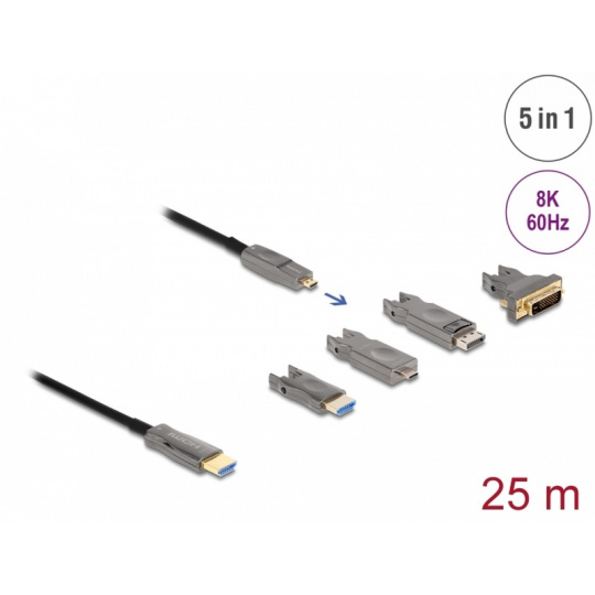 Delock Aktivní optický HDMI kabel 5 v 1, 8K, 60 Hz, 25 m