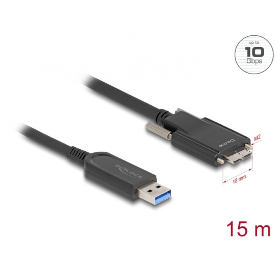 Delock Aktivní optický kabel USB 10 Gbps-A samec > USB 10 Gbps Typ Micro-B samec se šroubky 15 m