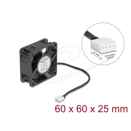 Delock Axiální ventilátor: 24 V DC, 60 x 60 x 25 mm, černý