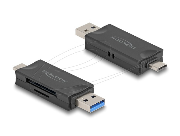 Tato čtečka karet od Delocku má dva paměťové sloty a umožňuje číst a zapisovat na různé SD, MMC a Micro SD paměťové karty. Čtečka karet může být připojena k PC nebo mobilnímu zařízení přes rozhraní USB Type-C™ nebo USB Typ-A.