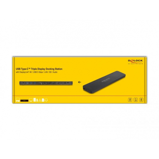 Delock Dokovací stanice pro tři displeje USB Type-C™ s rozhraním DisplayLink® 4K / USB 5 Gbps / LAN / SD / Audio / PD 80