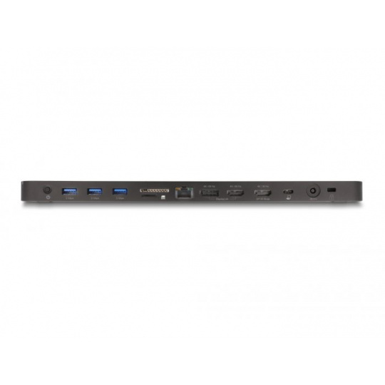Tuto dokovací stanici značky Delock lze k počítači připojit rozhraním USB-C™ DP Alt Mode, Thunderbolt™ 3 nebo Thunderbolt™ 4 a poskytuje několik různých rozhraní. Na výstupech pro monitory lze provozovat až tři monitory současně. Pět integrovaných portů USB 5 Gbps umožňuje používat periférie a jiný port USB lze používat k nabíjení mobilních zařízení. Funkcionalitu zařízení doplňují konektory sluchátek, přípojka sítě Gigabit a čtečka karet na paměťové karty SD a Micro SD. K zásuvce Kensington lze připojit bezpečnostní kabel na ochranu dokovací stanice před krádeží.
