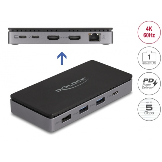 Delock Dokovací stanice USB Type-C™ 4K - duální HDMI MST / USB / Gibabit LAN / PD 3.0 85 W