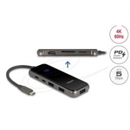 Delock Dokovací stanice USB Type-C™ 4K – HDMI / USB Hub / SD - Micro SD slot / PD 3.0 85 W s povrchem z tvrzeného skla