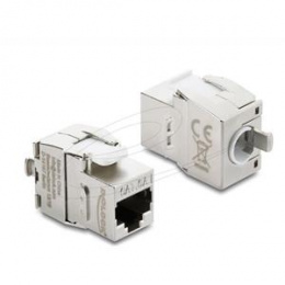 Delock Keystone modul ze zásuvky RJ45 na LSA Cat.6A, beznástrojový, stíněný, kovový, stříbrný / bílý