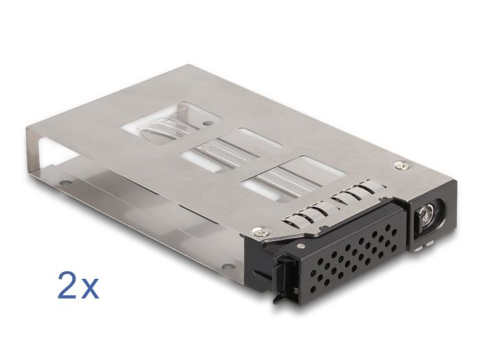 Tuto pevnou kovovou mobilní přihrádku značky Delock lze pomocí volitelného rámu nainstalovat do volné zásuvky rozměru 5.25” na PC. Navíc je mobilní přihrádku možné používat přímo v serverové přihrádce nebo na úložném krytu rozměru 19”.