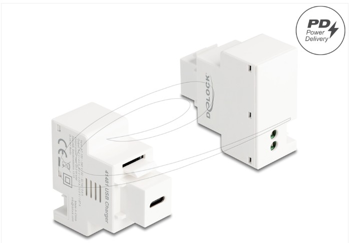 Tento modul od společnosti Delock poskytuje nabíjecí port USB Type-C™ s podporou Power Delivery (PD). Nabíjecí port USB podporuje běžné protokoly rychlého nabíjení. Připojená zařízení lze napájet výkonem až 20 W. Díky jeho normalizovaným rozměrům může být použit pro snadnou montáž např. do Keystone patchpanelové lišty nebo montážní krabice.