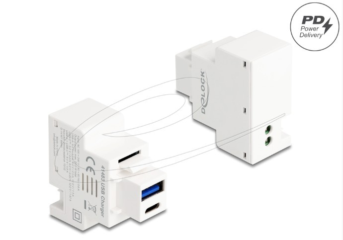 Tento modul značky Delock poskytuje nabíjecí porty USB Typ-A a USB Type-C™ Power Delivery (PD). Nabíjecí porty USB podporují běžné protokoly rychlého nabíjení. Připojená zařízení lze napájet výkonem až 20 W. Díky jeho normalizovaným rozměrům může být použit pro snadnou montáž např. do Keystone patchpanelové lišty nebo montážní krabice.
