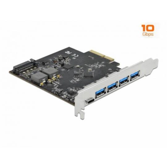 Delock PCI Express x4 Karta na 1 x USB Type-C™ + 4 x USB Typ-A - SuperSpeed USB 10 Gbps