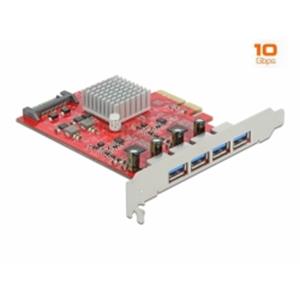 Delock PCI Express x4 Karta na 4 x externí SuperSpeed USB 10 Gbps (USB 3.2 Gen 2) USB Typ-A samice