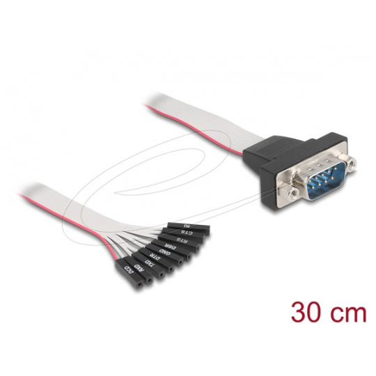 Delock Plochý stuhový kabel RS-232 z 9 pinového zásuvkového konektoru na 9 pinovou zástrčku D-Sub s maticemi, 30 cm