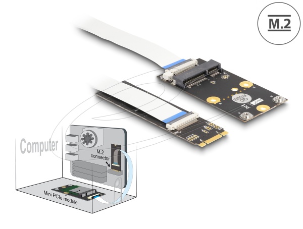Delock Převodník M.2 Key B+M samec na 1 x Mini PCIe Slot half size / full size s flexibilním kabelem