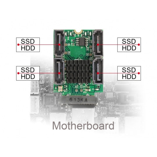 Delock Převodník M.2 Key B+M samec na 4 x SATA samec s RAID a HyperDuo