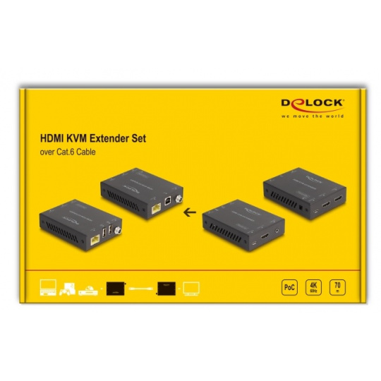 Delock Prodlužovací sada HDMI KVM po kabelu Cat.6, 4K 60 Hz, 70 m