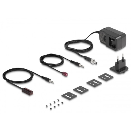 Dodaný infračervený vysílač a přijímač lze připojit k zařízením, aby přenášel infračervený signál po kabelu.