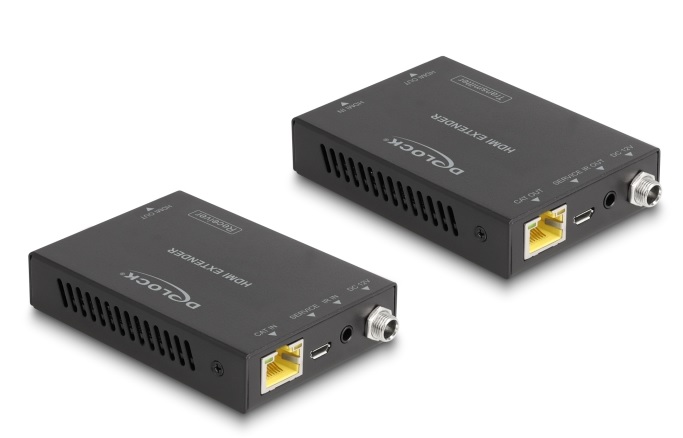 Tato sada prodlužovače HDMI značky Delock slouží k přenášení videosignálu a zvukového signálu s vysokým rozlišením a signálu infračerveného řízení po jediném síťovém kabelu. Při rozlišení 4K, 60 Hz jsou možné vzdálenosti až 50 m a při rozlišení 1080p lze dosáhnout vzdáleností až 70 m. Tato sada najde široké využití v konferenčních místnostech, při dálkovém vzdělávání nebo u velkých obrazovek.