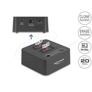 Delock USB 20 Gbps Dokovací stanice M.2 pro 2 x SSD M.2 NVMe PCIe s funkcemi klonování a mazání