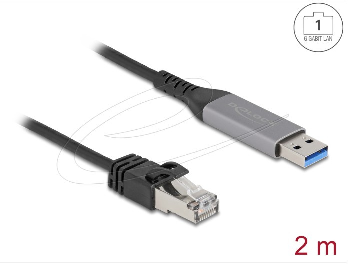 Delock USB LAN kabel z rozhraní USB Typ-A na RJ45 Gigabit Ethernet, 2 m