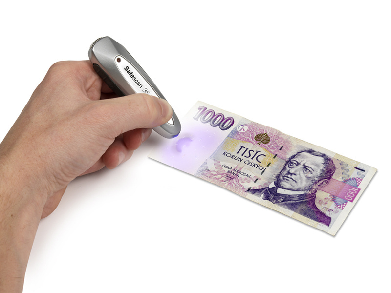 Kompaktní detektor Safescan k ověření pravosti bankovek třemi různými způsoby: UV, magnetické vlastnosti a bezpečnostní proužek. - Kompaktní detektor padělků bankovek Safescan - Trojnásobné ověření (UV, magnetické vlastnosti, bezpečnostní proužek) - Nízká hmotnost – jen 20 g - Přívěšek na krk - Baterie (4x LR44) jsou součástí balení - Příručka - Velikost: 90 x 30 x 25 mm