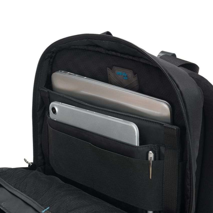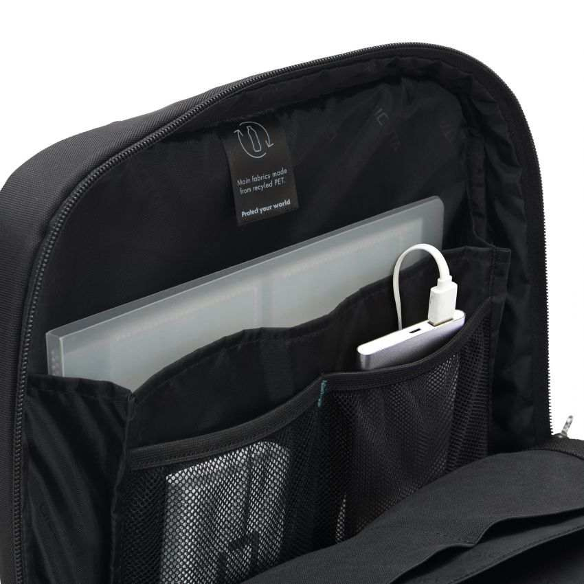 With the ECO Backpack Slim PRO you travel "1st class". The backpack reliably accompanies you wherever you go and meets the highest standards of quality, functionality and protection. Made from high-quality recycled PET, the Slim PRO Backpack protects our planet - ideal for the environmentally conscious consumer. The main material consists of 13 recycled PET bottles. DICOTA's attention to detail makes this bag your most reliable business partner.
