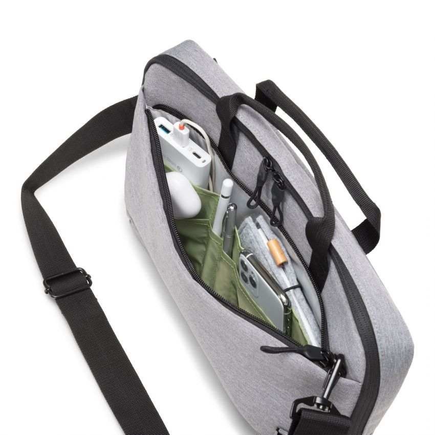 The Eco Slim Case MOTION is a light, slim laptop case. Devices between 14 and 15.6" are well protected in the padded notebook compartment. The slip pocket provides reliable protection for tablets up to 12.9". The case is comfortable to carry thanks to its padded carrying handle and adjustable shoulder strap. The extra compartment on the back is especially handy for easily storing documents. Your smartphone or other smaller items like cables, pens or chargers can be stored in the convenient front pocket, so they are always on hand. The bag is made of water-repellent material to protect the contents even on rainy days. The Eco Slim Case MOTION is therefore perfect for you if you are always on the go and want to support the recycling of PET bottles with an eco-friendly case.
