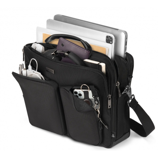 Taška je navržena pro prvotřídní ochranu a praktickou funkčnost a je vybavena technologií DICOTA Cushion Technology pro maximální bezpečnost zařízení, vestavěným RFID stíněním pro ochranu citlivých dat a speciální přihrádkou pro tracker pro větší bezpečnost.