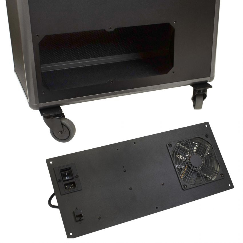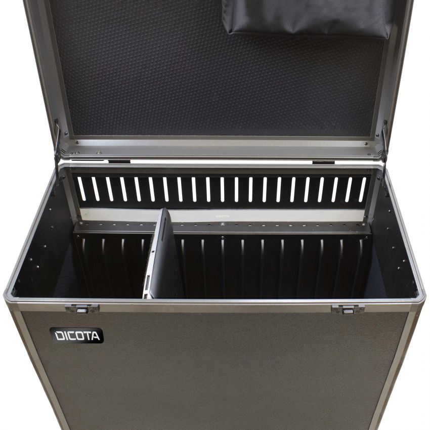 Nastavitelná přepážka umožňuje přizpůsobení modulu zařízení notebookům o rozměrech až 33 × 254 × 380 mm (16 palců). Zařízení jsou umístěna mezi ABS panely a každé má své vlastní místo. Veškeré napájení je kompletně napájeno na odnímatelné montážní desce, která má vlastní vnitřní rozvod napájení, je vzájemně kompatibilní s konektorem GST18 a obsahuje napájecí modul C14 s integrovaným spínačem a automaticky resetovatelnou pojistkou. K ochraně zařízení před přehřátím je vozík vybaven výkonným, ale tichým ventilátorem. Maximální ochranu poskytuje robustní hliníková a perleťová konstrukce se zabudovaným zámkem, posuvná rukojeť a čtyři vysoce kvalitní kolečka pro pohodlnou přepravu. Malé předměty, jako jsou napájecí kabely, lze uložit do kapsy na víku.