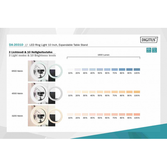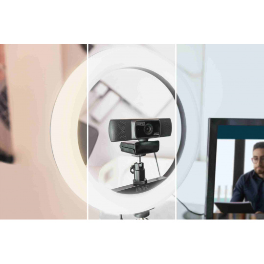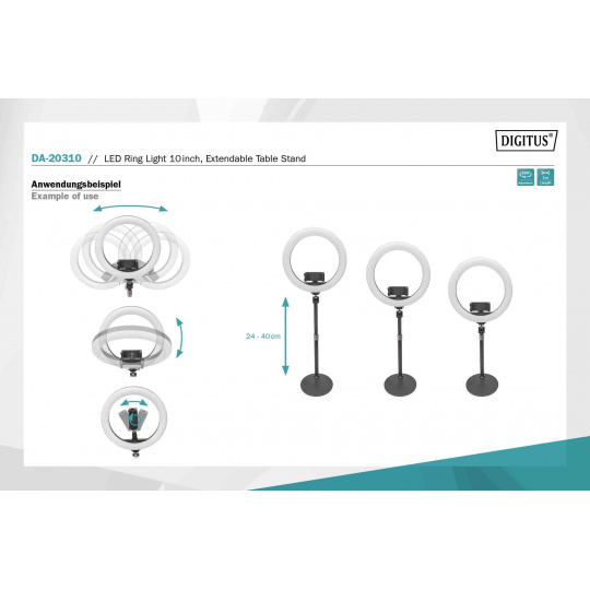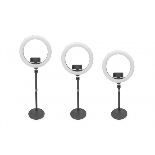 DIGITUS 10palcové LED kruhové světlo stolní se stativovým stojanem a držákem na chytrý telefon, stmívatelné světlo