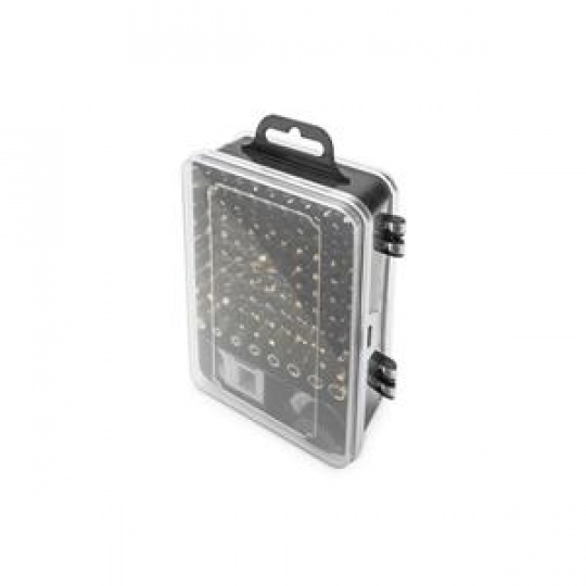 Sada obsahuje 115 dílů pro nejrůznější aplikace v přesné mechanice. Díky oboustranně vyplněné kazetě je sada kompaktní, a přesto přehledná.
